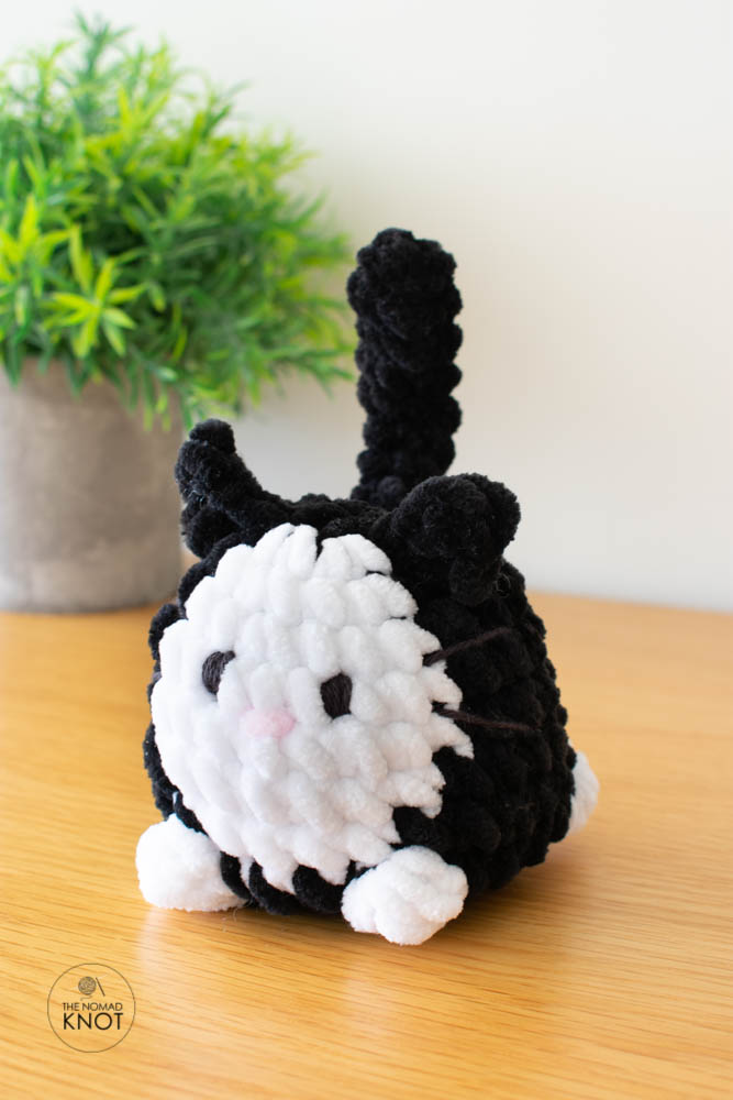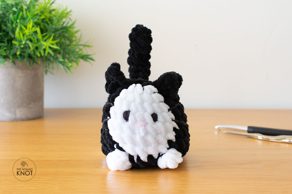 Get ready to fall in love with the newest member of the “Little Chonkers” collection! This free crochet pattern for a no-sew tuxedo cat is perfect for anyone, even beginners, with its detailed step-by-step photos. With its classic black-and-white style and chubby, cuddly design, this kitty is a quick and fun project to add to your collection. This is the third pattern in the “Little Chonkers” series, and if you enjoyed the previous gray tabby or white cat patterns, you’ll adore this new addition. Get ready to expand your family of squishy crochet cats!
